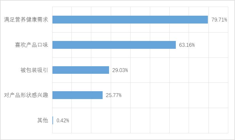 随着国民对健康的关注度提升,针对特定人 群的食品很受欢迎,比如儿童、老人、孕妇等。七 成以上消费者认为标注适宜人群有利于自己合理 选购产品,其中满足营养健康需求是最重要的考 量,其次是产品口味、包装、外形的偏好。
