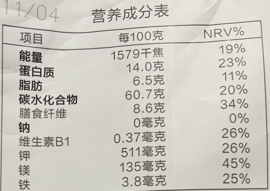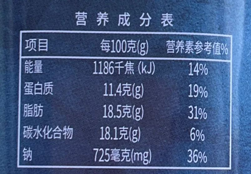 比如,某种食品钠的 NRV% 为 20%,说明吃 100 克该食品就摄入了一天所需钠的 20% ;若另一种食品钠的 NRV% 为 105%,说明吃 100 克该食品不仅摄入了一天所需钠的全部分量,还超了 5%。