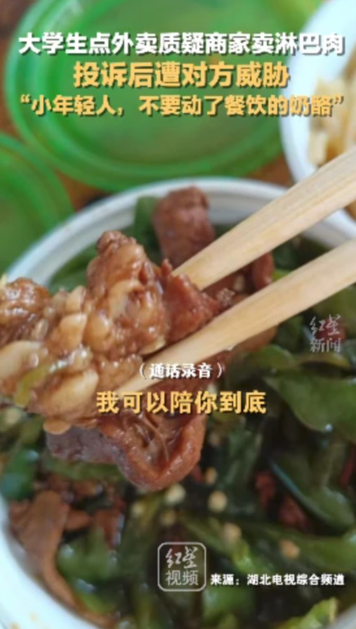 当记者针对此事进行采访时,夏先生表示,自己收到的外卖青椒炒肉里面的肉(怀疑)用的是淋巴肉,联系商家退款竟遭到店家威胁,他录了音。并将录音公布了,随后当地市场监管部门介入调查。