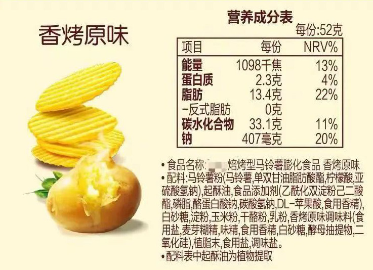 如果食品写了“非油炸”,但是配料表里的头几个配料中,依然有植物油等油脂,说明它在加工过程中还是加了油的,跟油炸本质是一样的。