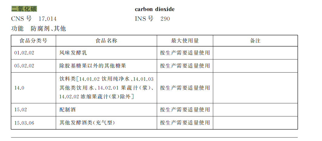 最近更新的食品安全国家标准GB 2760中就指出,二氧化碳可以作为一种食品添加剂用于食品中,功能为“防腐剂”“其他”。