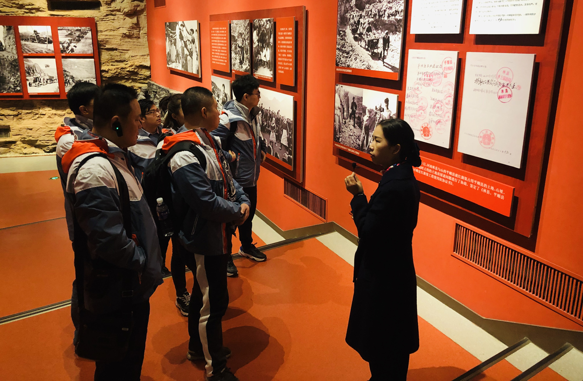 据史料记载,“上世纪60年代,林县人凭借着一锤一钎一双手,用十年时间在巍巍太行的崇山峻岭上修建了一条人工天河红旗渠,浩浩荡荡的幸福之水不但解决了千百年来渴盼的吃水灌溉问题,也孕育形成了自力更生、艰苦创业、团结协作、无私奉献的红旗渠精神。”在参观红旗渠纪念馆时,双手拂过那磨损严重的锤头、铁钎,看着一张张珍贵的老图片,一桩桩感人的事迹,工作人员的讲解让大家深受触动,热血沸腾,仿佛回到了艰苦卓绝的峥嵘岁月。