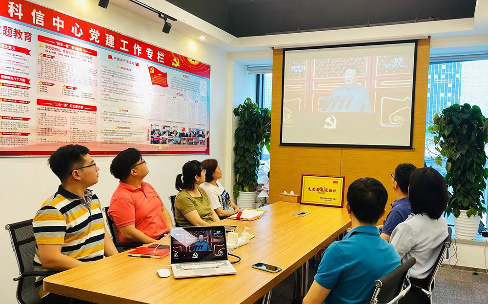 中心组织全体员工在中心会议室通过现场直播观看庆祝中国共产党成立100周年大会盛况,听取并学习中共中央总书记、国家主席、中央军委主席习近平重要讲话精神,共同回顾百年征程波澜壮阔,体会百年初心历久弥坚。会上,习近平总书记代表党和人民庄严宣告,“经过全党全国各族人民持续奋斗,我们实现了第一个百年奋斗目标,在中华大地上全面建成了小康社会,历史性地解决了绝对贫困问题,正在意气风发向着全面建成社会主义现代化强国的第二个百年奋斗目标迈进。这是中华民族的伟大光荣!这是中国人民的伟大光荣!这是中国共产党的伟大光荣!”