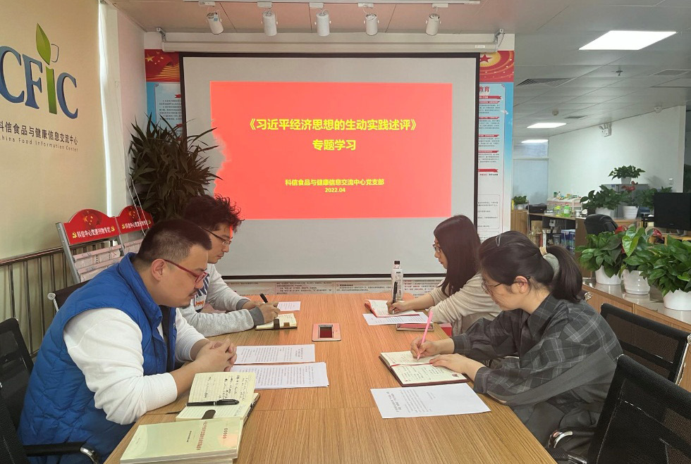 中心党支部书记吴桐表示,习近平经济思想内涵丰富、博大精深,深刻回答了我国经济发展的方向性、根本性、战略性问题,是习近平新时代中国特色社会主义思想的重要组成部分,是中国特色社会主义政治经济学的最新理论成果,是引领中国实现更高质量更可持续更为安全发展的行动指南。要深入学习深刻领会习近平经济思想的重大意义,不断提高政治判断力、政治领悟力、政治执行力,深刻领会“两个确立”的决定性意义,坚决做到“两个维护”,切实把习近平总书记的重要思想、重要论述、重要指示转化为推动日常工作的具体行动,奋力打造最具影响力的食品安全与健康信息交流平台。