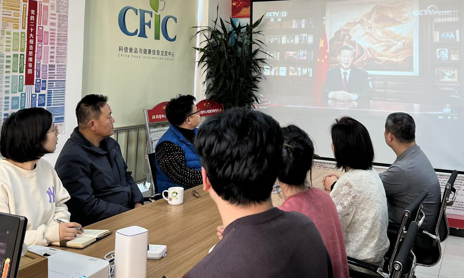 大家也都纷纷表示,习近平主席新年贺词温暖人心、充满力量、令人鼓舞、催人奋进,字字句句饱含着对祖国对人民的深情厚爱,对中国未来发展美好前景的坚定信心以及对全党全国各族人民的殷切嘱托,为我们的工作进一步指明了方向、注入了强大动力,激励我们担负时代重任、不忘初心使命,不负韶华、继续奋斗。我们要用心感悟习近平主席新年贺词的深刻内涵,将学习贺词精神与学习党的二十大精神紧密结合,脚踏实地,埋头苦干,不负时代,不负华年,更加奋发有为,推动新时代我国食品信息交流工作高质量发展!