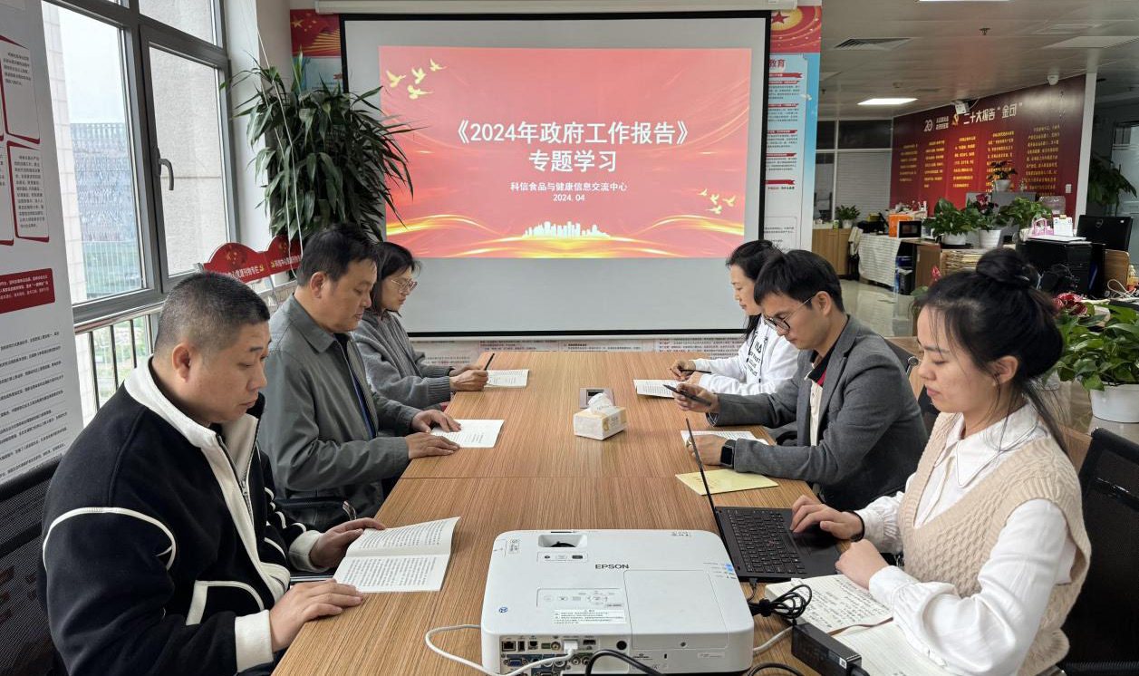 为深入学习贯彻“两会”精神,把思想和行动统一到党和国家的决策部署上来,4 月 15 日, 中心党支部开展了《2024 年国务院政府工作报告》专题学习活动,中心全体成员认真参加了此次学习活动。包大跃书记带领大家学习了《2024 政府工作报告》(以下简称《报告》)全文。随后大家对相关报告内容进行了讨论发言。
