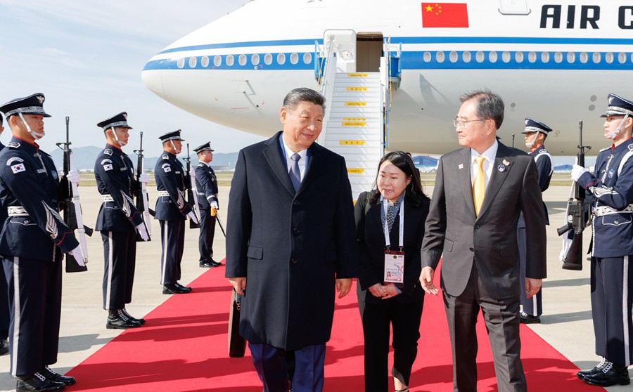 习近平抵达韩国出席亚太经合组织第三十二次领导人非正式会议并对韩国进行国事访问