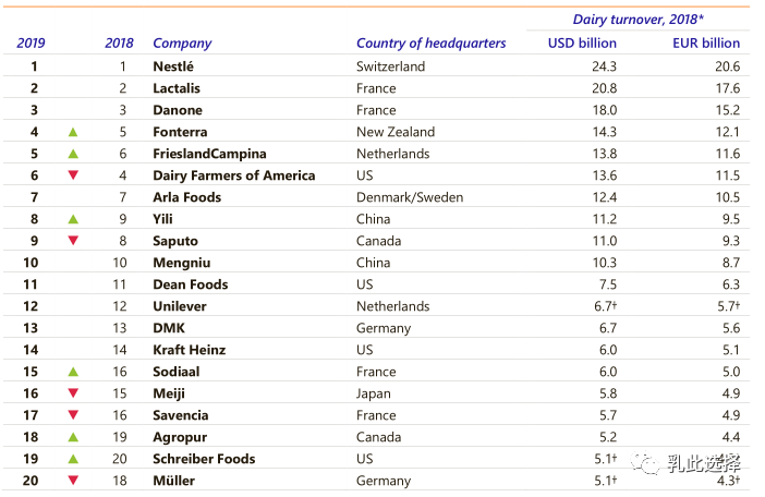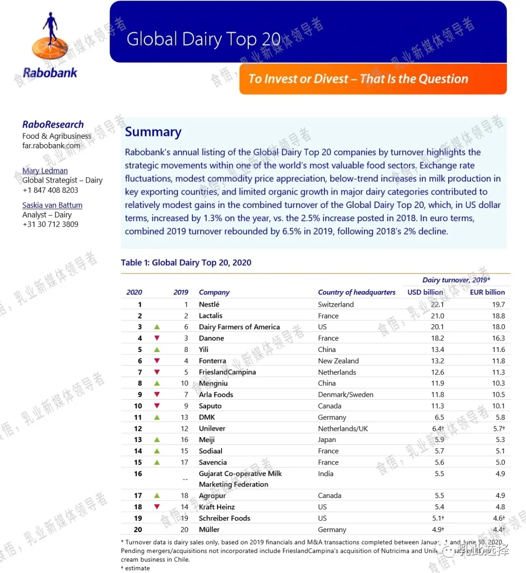 2019年全球乳业20强排行榜,来自荷兰合作银行