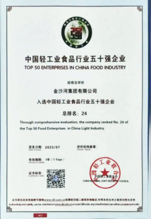 2023年中国轻工业百强企业高峰论坛在北京举行。论坛上发布了 2022 年度“中国轻工业二百强企业”“中国轻工业食品行业五十强企业”。金沙河集团以食品制造行业光荣上榜,位居“中国轻工业食品行业五十强企业”24 位、“中国轻工业二百强企业”第 83 位!
