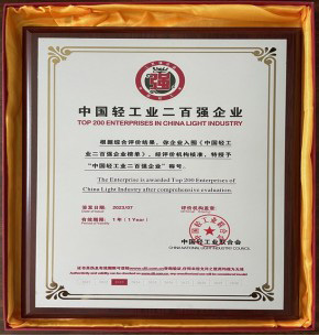 金沙河集团荣获“2022 年度中国轻工业 200 强企业”称号