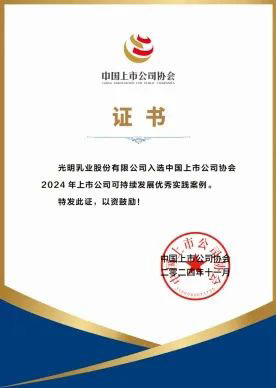 近日,光明乳业凭借在 ESG 方面的优秀表现,从中脱颖而出,荣获 2024 中国企业ESG“金责奖”公司治理责任优秀企业荣誉。